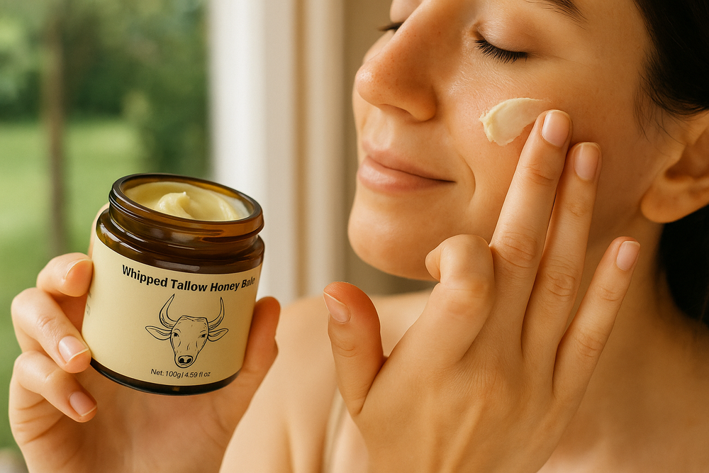 Our balm is made from 100% grass-fed beef tallow — a natural fat that closely matches your skin’s own oils. It deeply hydrates, repairs, and protects your skin barrier, reducing dryness, fine lines, and irritation over time.